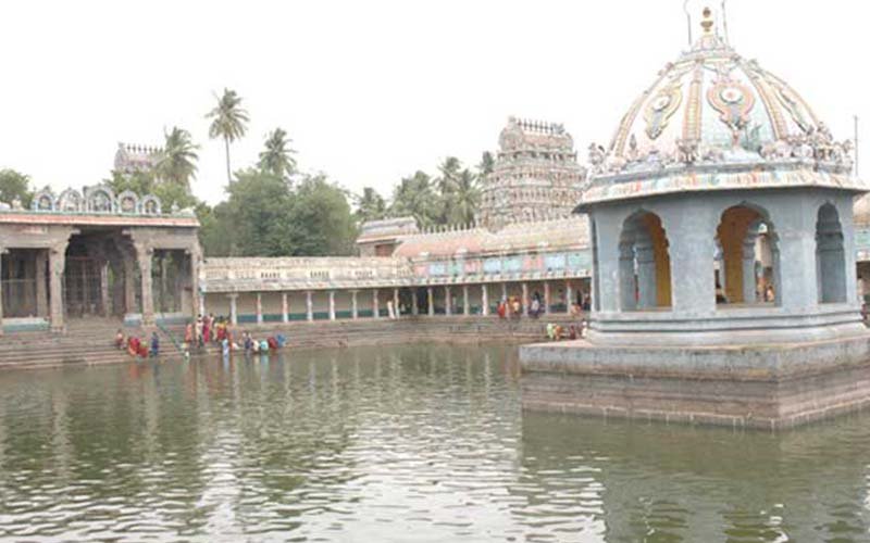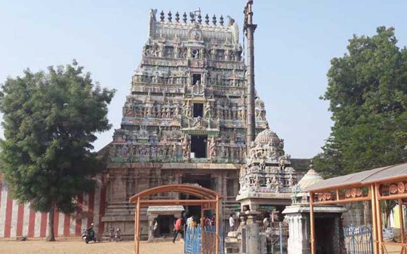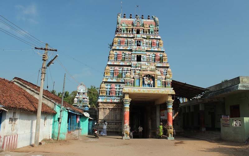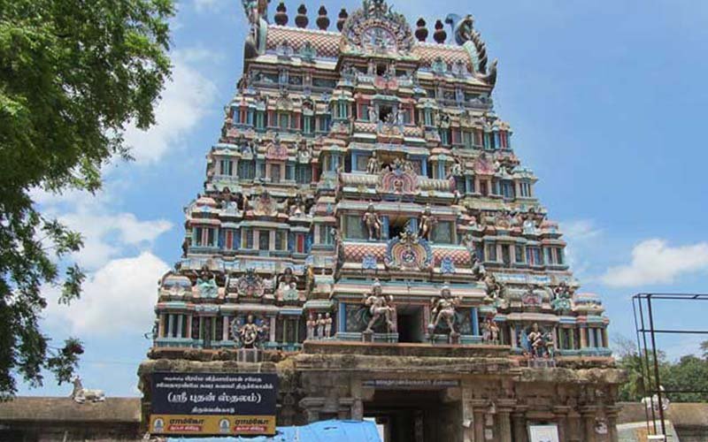 Tirunallar Saniswaran Temple or Dharbaranyeswarar Temple is a Hindu temple dedicated to the deity Shiva, located in a village, Thirunallar of karaikal district of Union territory of Puducherry 24 km from Nagapattinam town of Tamil Nadu. The temple complex covers around two acre and entered through a five tiered gopuram, the main gateway. The temple has a number of shrines, with those of Dharbaranyeswarar, his consort Praneswari Amman, Saniswararan and Somaskandar being the most prominent. All the shrines of the temple are enclosed in large concentric rectangular granite walls. The present masonry structure was built during the Chola dynasty in the 9th century, while later expansions are attributed to Vijayanagar rulers. The temple is maintained and administered by the Department of Hindu Religious Institutions by the Government of Puducherry. The temple has six daily rituals at various times from 6:00 a.m. to 9:00 p.m., and four yearly festivals on its calendar. Mahasivarathri festival celebrated during the month of the Chittirai (March - April) is the most prominent festival of the temple for the presiding deity, while Sanipeyarchi festival that occurs every 2.5 years is the most prominent for Shani.